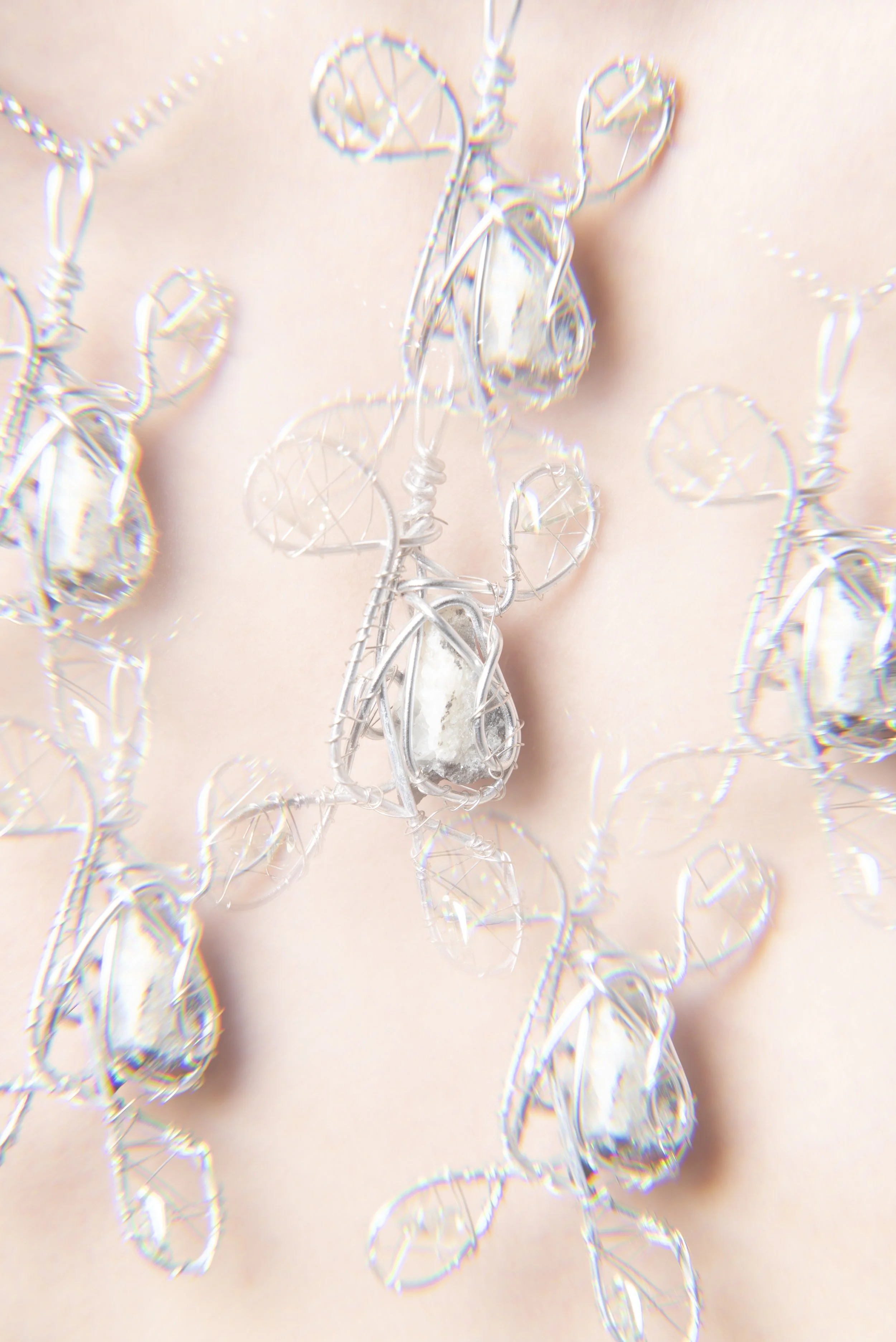 Een juwelenmerk dat getypeerd wordt door ijzerdraad, stenen en natuurlijke vormen en elementen.
